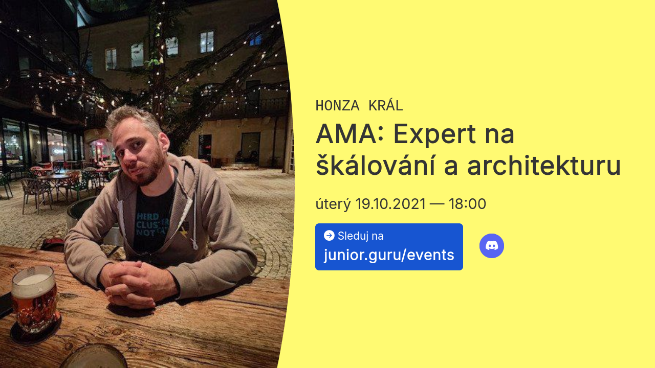 AMA znamená ask me anything. Honza Král se dlouhá léta zabývá provozem a architekturou složitých systémů. Jak lze navrhovat kód, aby toho zvládl hodně v krátkém čase? Jaké triky má využít webová stránka, pokud chce obsloužit miliony uživatelů? Jak navrhnout a provozovat databáze, aby se popraly s náporem? Zeptej se na cokoliv, co tě zajímá!