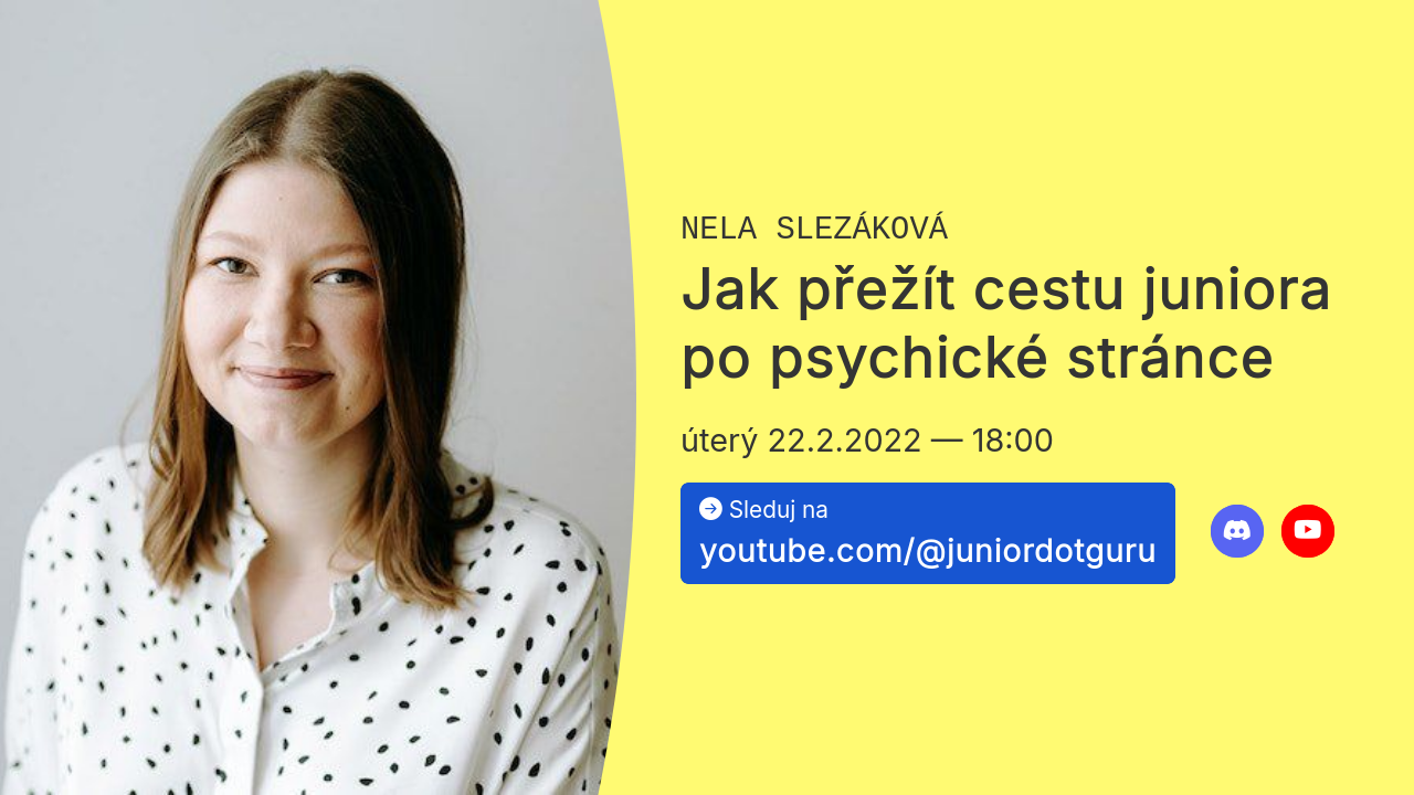 Říká se, že zdraví máme pouze jedno. Ale zatímco to fyzické zanedbává málokdo, péče o psychické zdraví zdaleka není takovou normou. Cesta do IT je náročná životní změna. Vysoké nároky na sebe sama, srovnávání se s ostatními, obavy zda jste dost dobří, zda se vám to podaří, nedostatek odpočinku… To vše může vést až k vyhoření. Na přednášce si představíme pět zásad, každou s praktickými tipy, které vám pomohou si na cestě do IT své psychické zdraví nepošlapat.